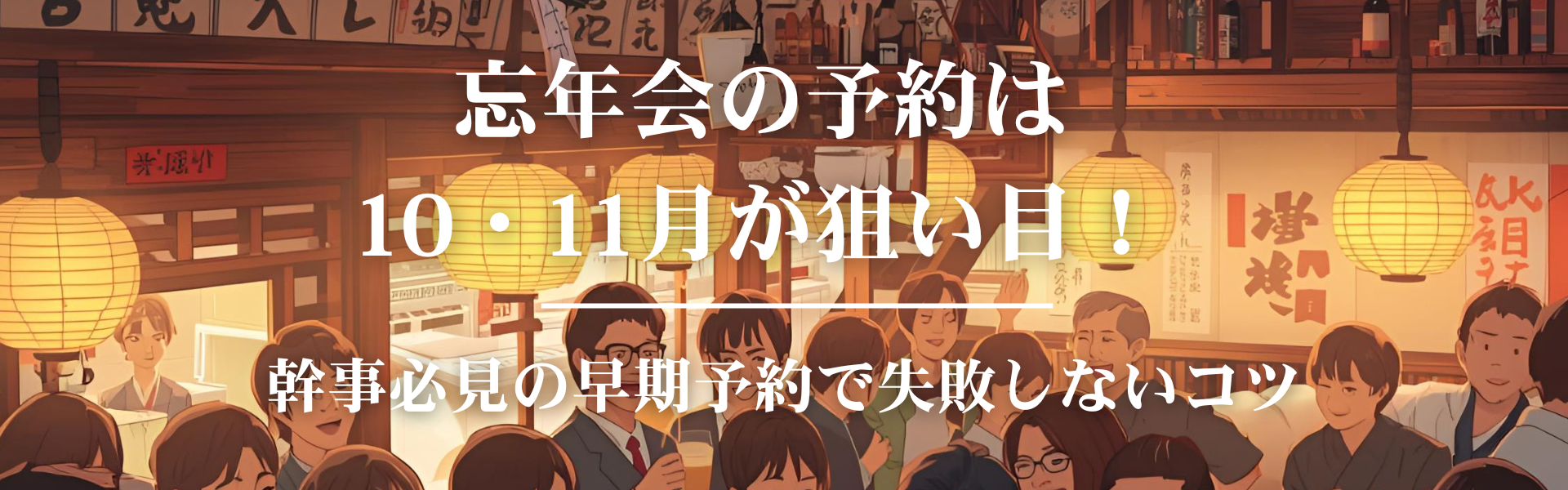 ぜひ今年は、早めの予約で人気の日程と会場を確保し、参加者全員に喜ばれる忘年会を実現してください。準備は早いほど安心です。