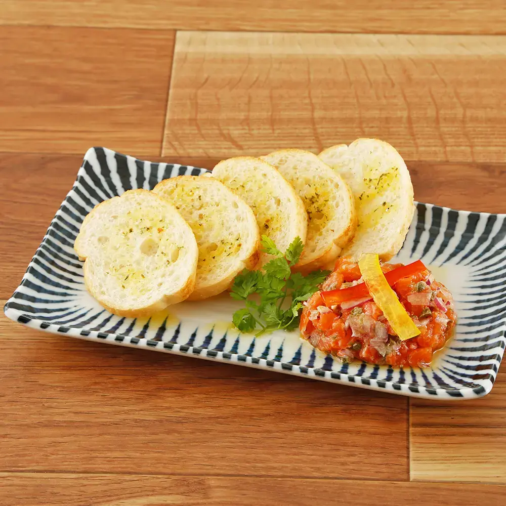 サーモンの旨味をケッパーの酸味で引き立てた一品。ガーリックトーストと一緒にお召し上がりください。
